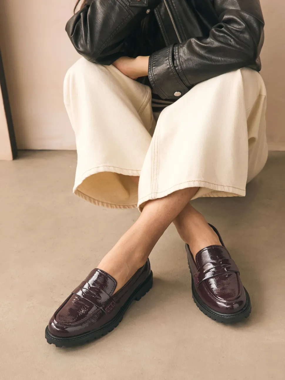 Rouge bordeaux – Mocassins vernis épais