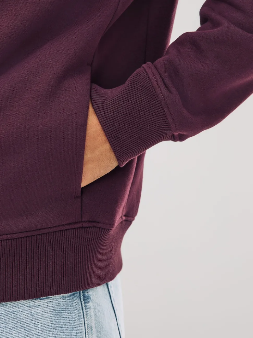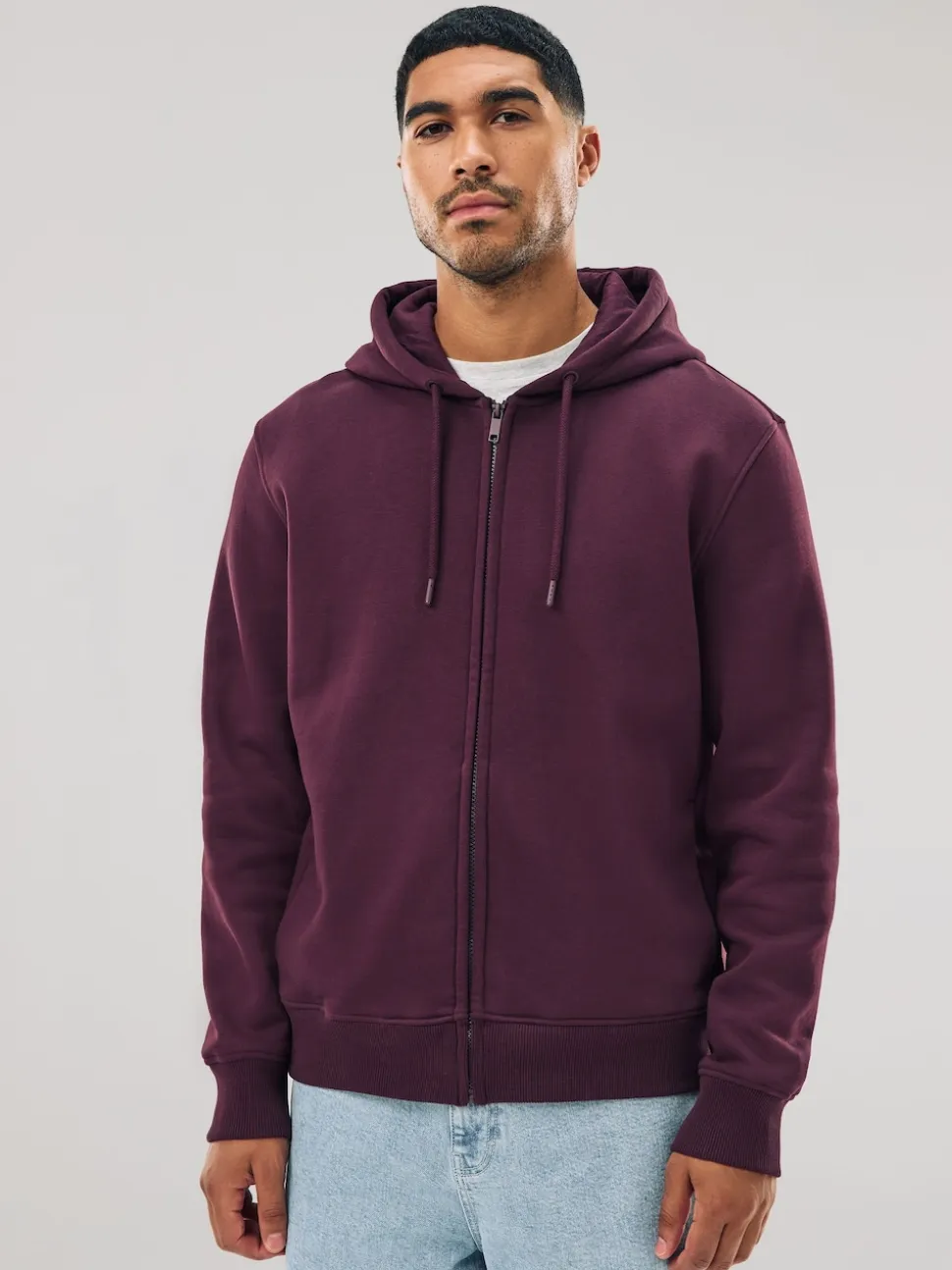 Rouge bordeaux – Sweat à capuche zippé en jersey épais riche en coton