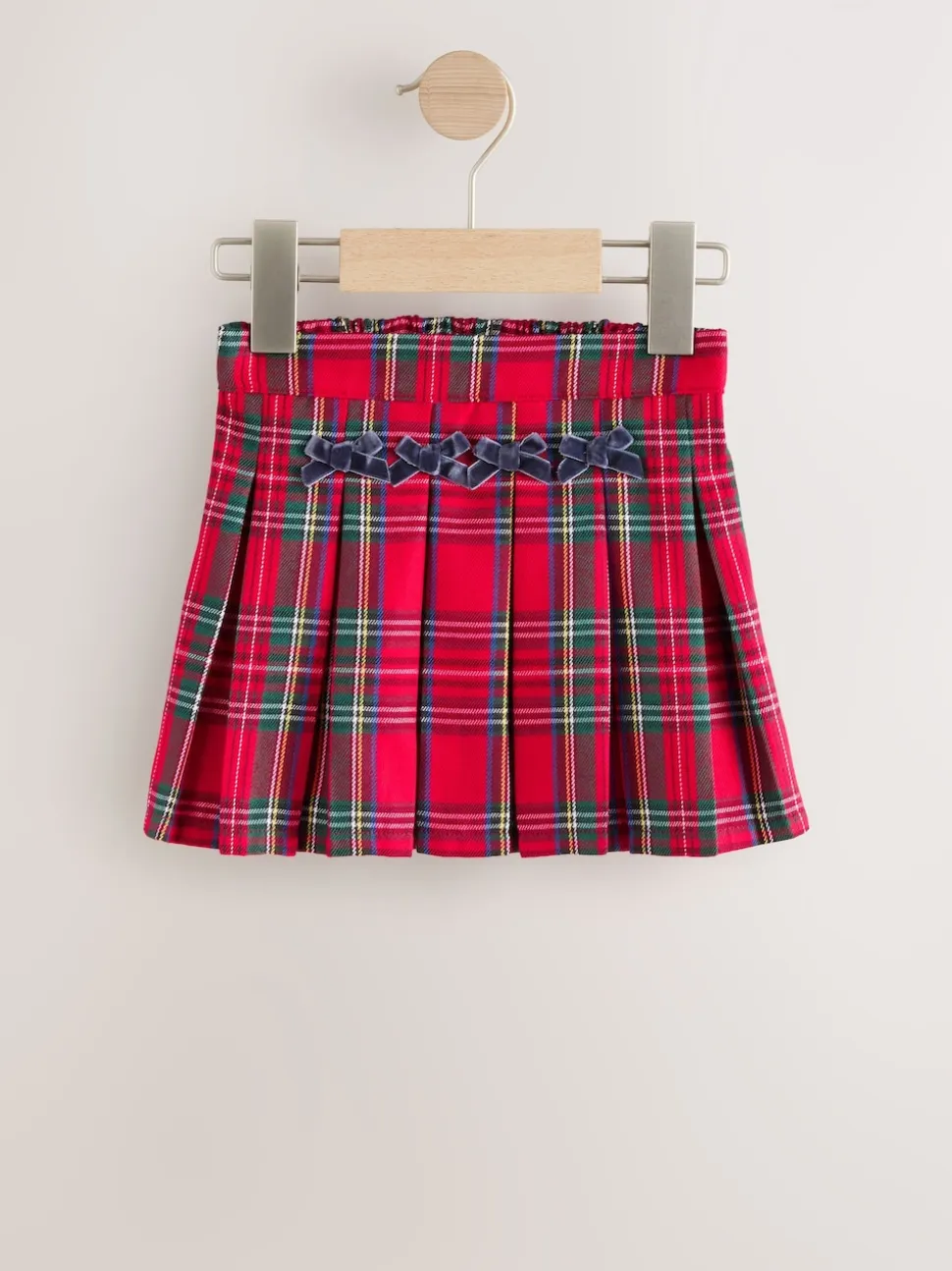Rouge – Jupe à nœud en tartan avec collants bleu marine (3mois7ans)