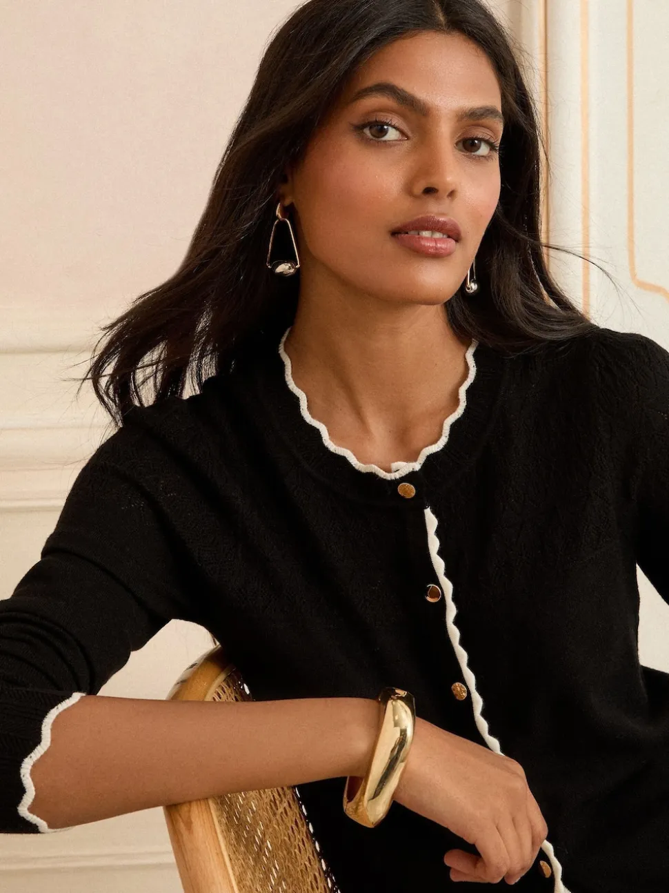 Sandales noires à bout festonné – Cardigan Love & Roses en maille