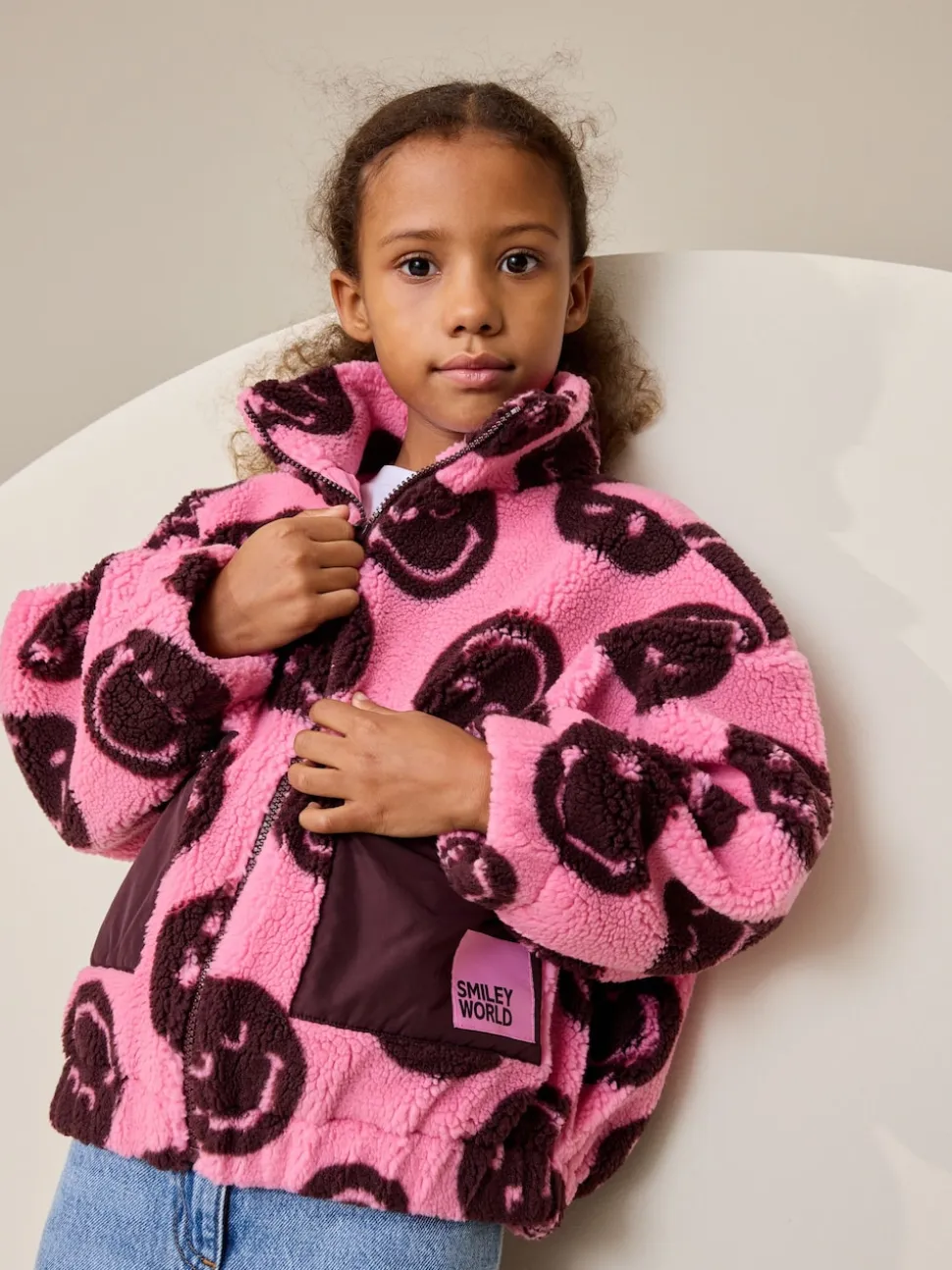 Smiley rose/baie – Zip Up Borg Jacket (3-16yrs)