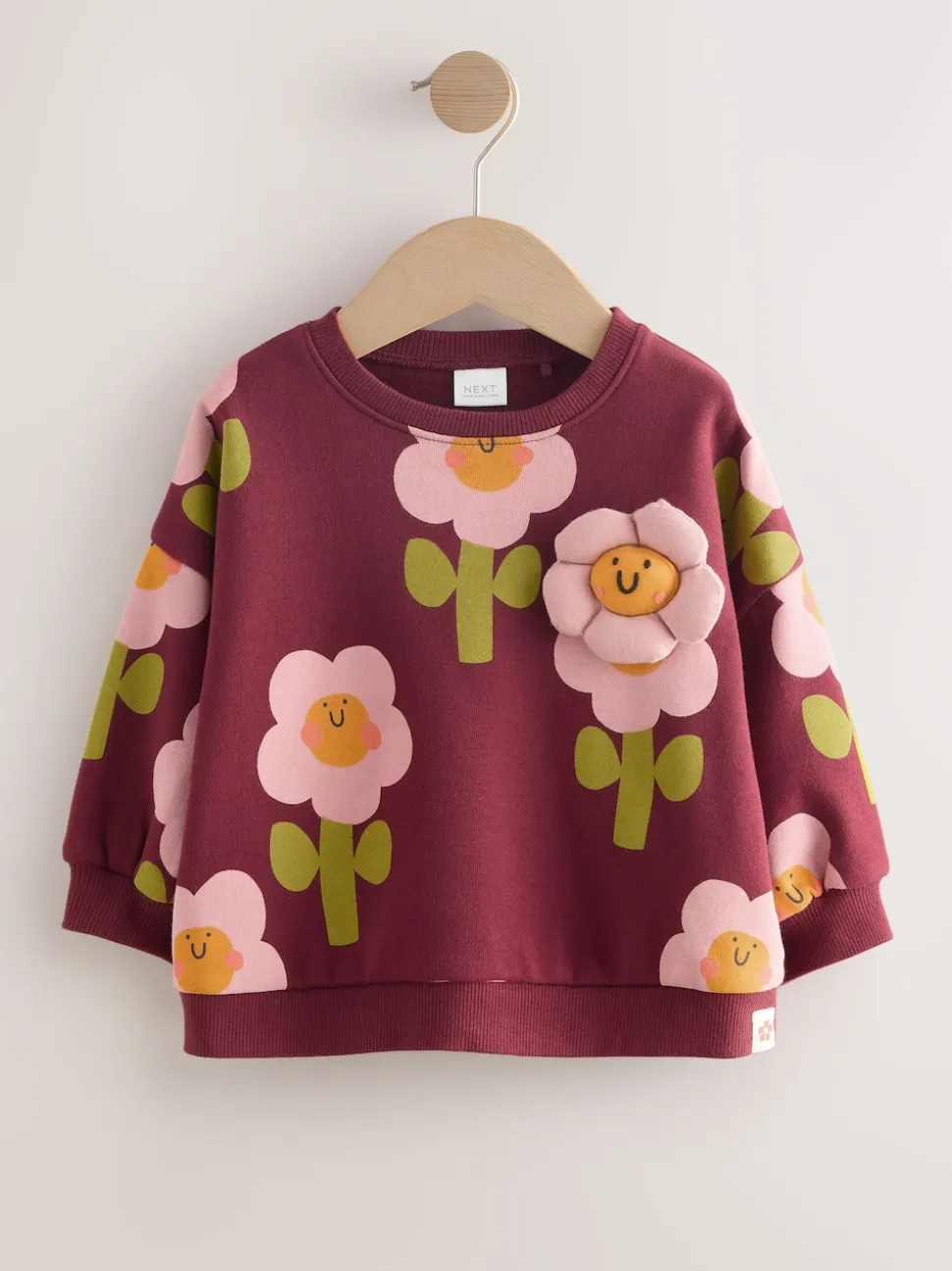 Smiley rouge bordeaux imprimé fleurs – Sweat à col ras du cou (3mths-7yrs)