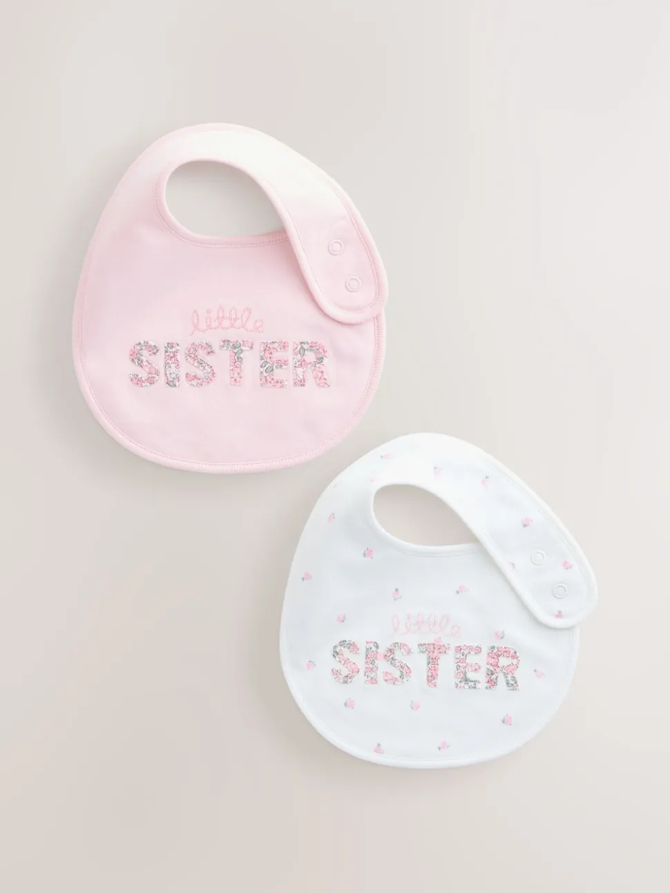 Sœur rose/blanc – Lot de 2 bavoirs bébé familial
