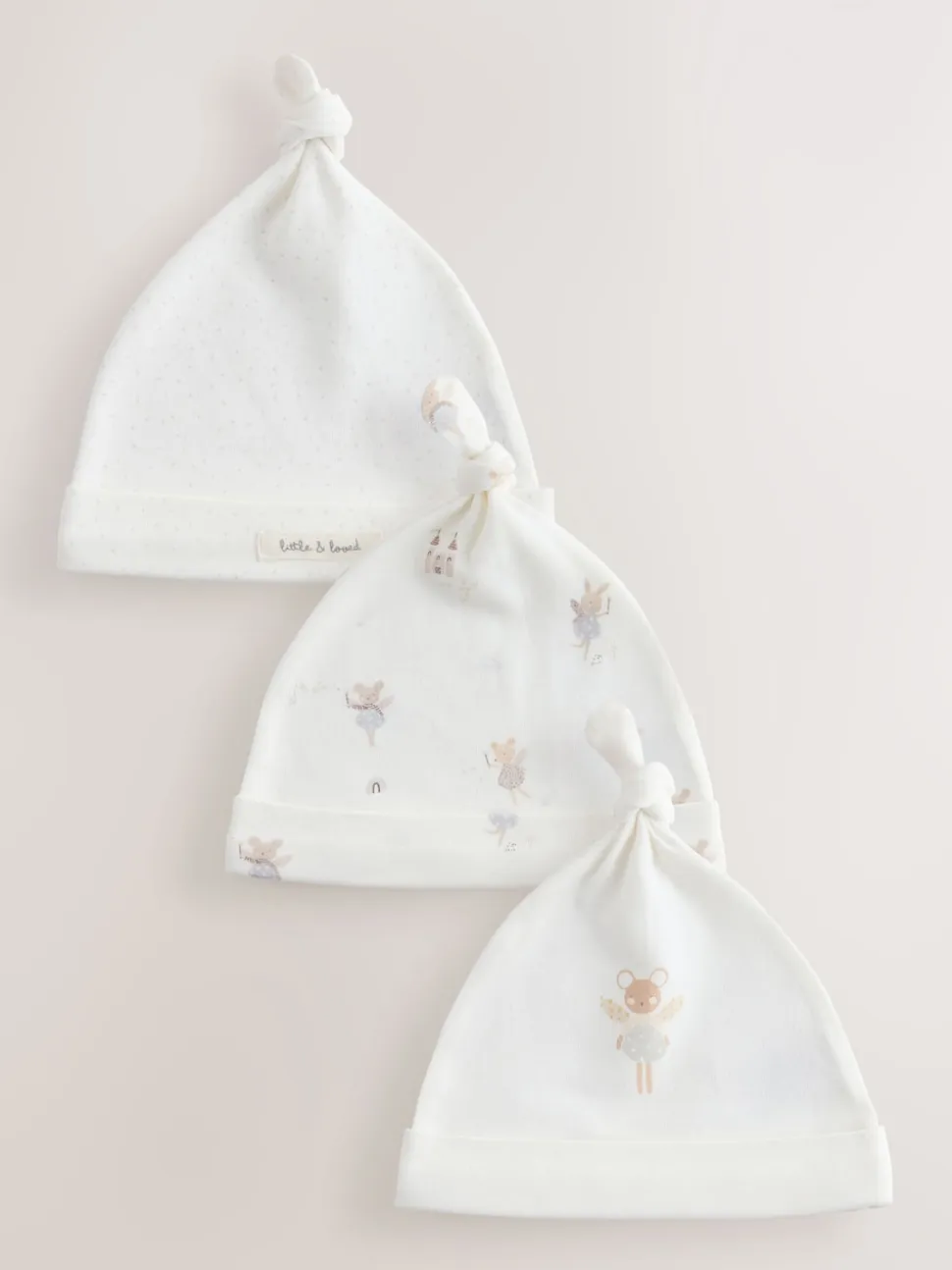 Souris écru à fées – Lot de 3 bonnets bébé noués (0mois-2ans)