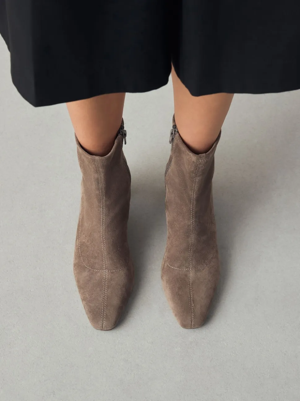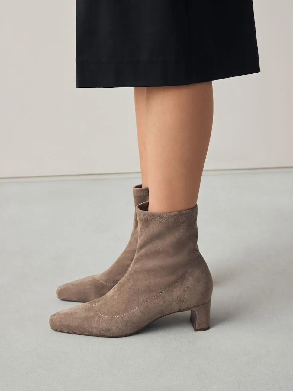 Taupe neutre – Bottes chaussettes à talon bloc et bout ciselé