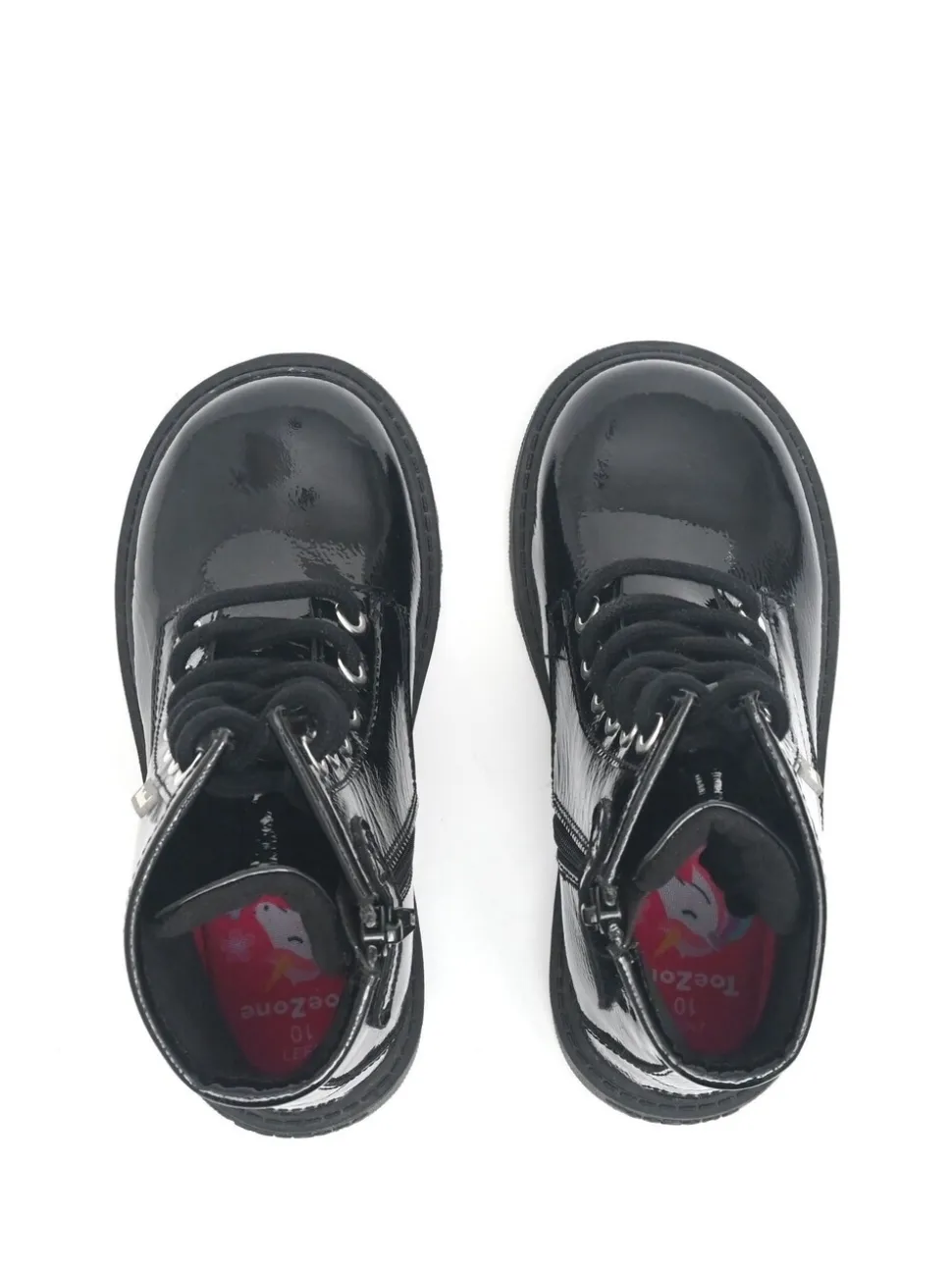 ToeZone Bottes noires à lacets et zip latéral en cuir verni Alice