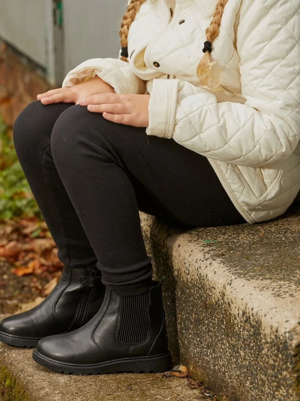 Toezone Lily Filles Leather Gusset and Zip Ankle Noir Bottes