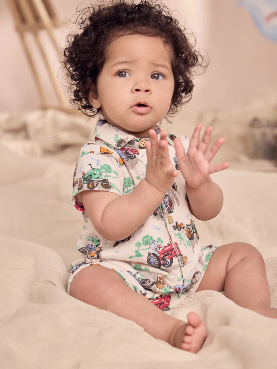 Tracteur écru à col imprimé – Barboteuse Kidston 100% Cotton Cath