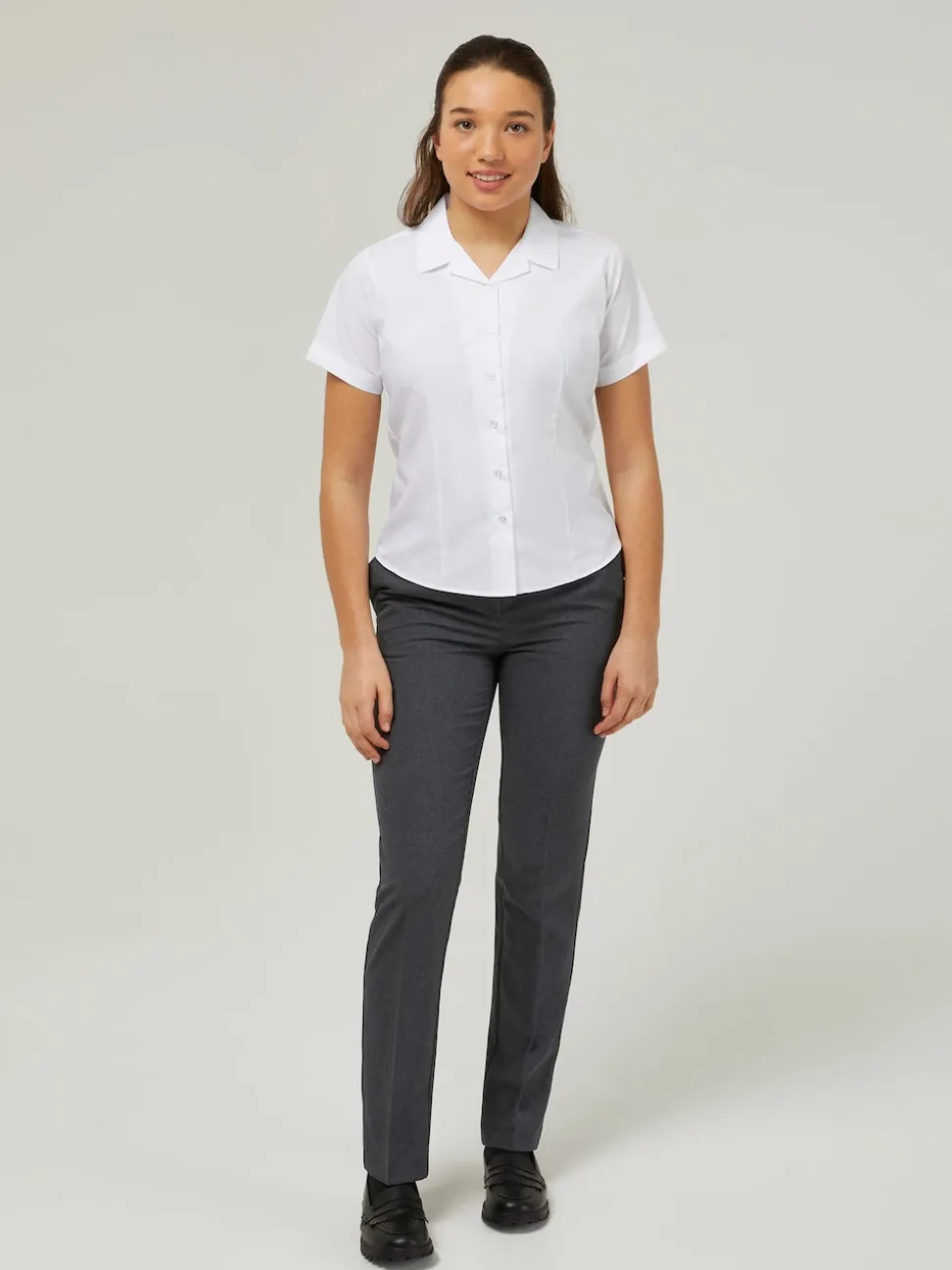 Trutex Blanc Cuban Collar Coupe ajustée Manches courtes 2 Pack School Chemises