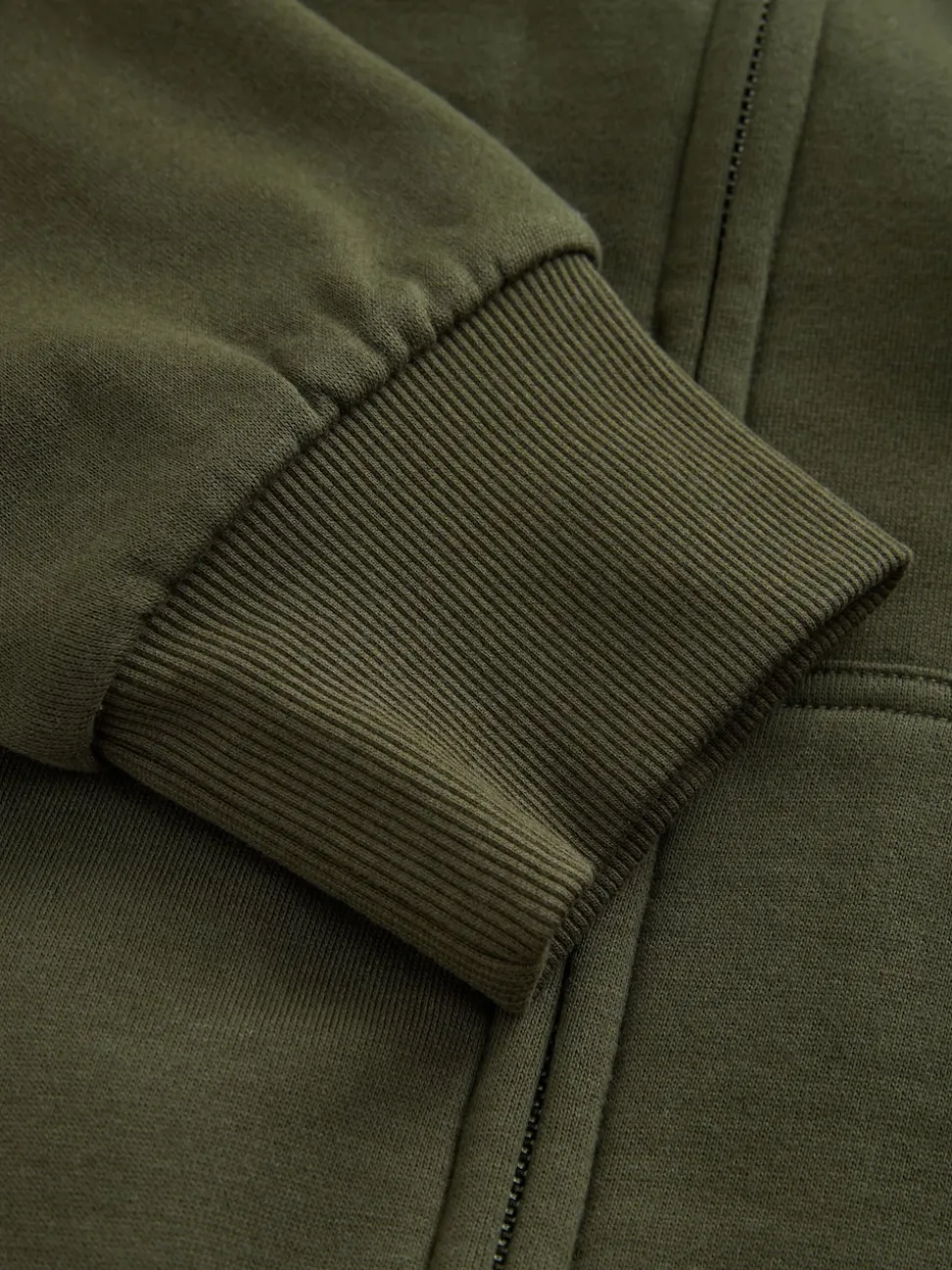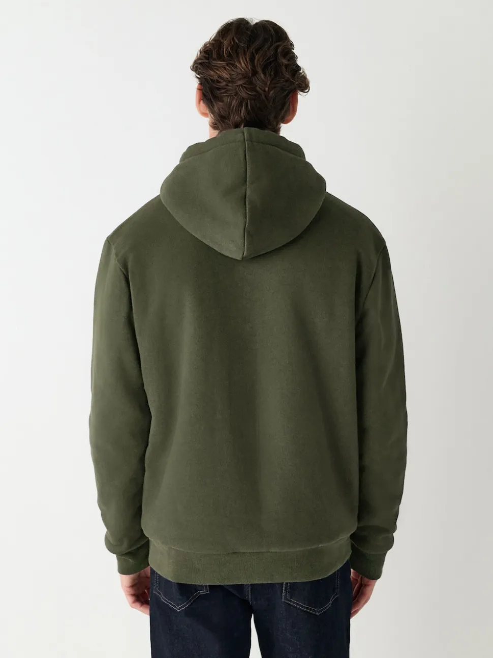 Vert kaki – Sweat à capuche zippé doublé en polaire en peau de mouton