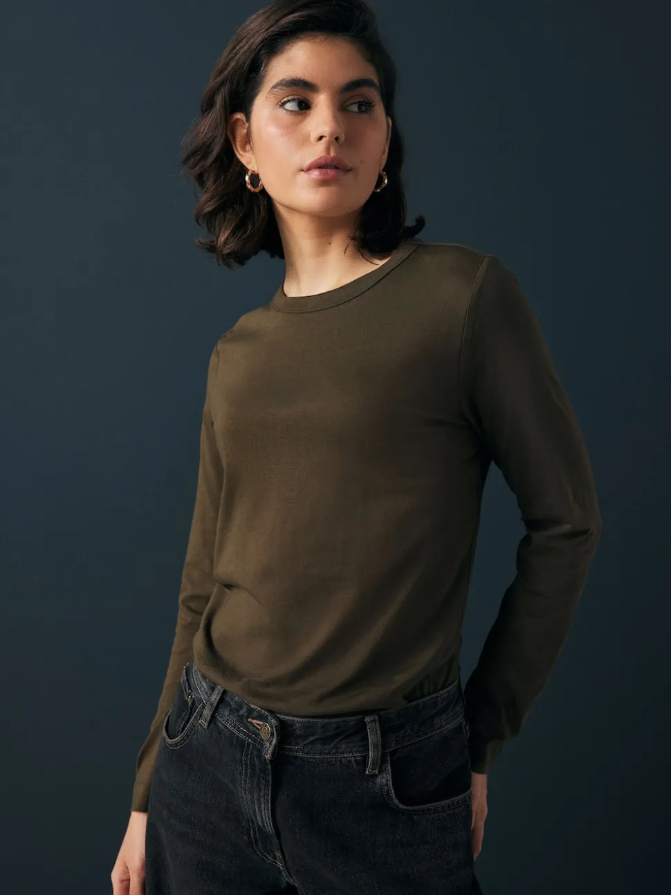 Vert olive – T-shirt à manches longues de cou d’équipage