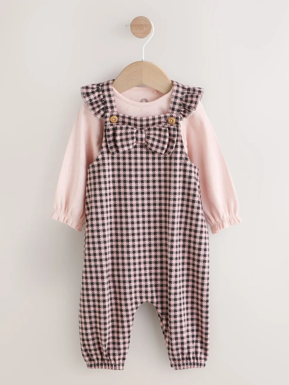 Vichy rose / chocolat – Body à manches longues et salopettes bébé Ensemble 2 pièces (0mois-2ans)