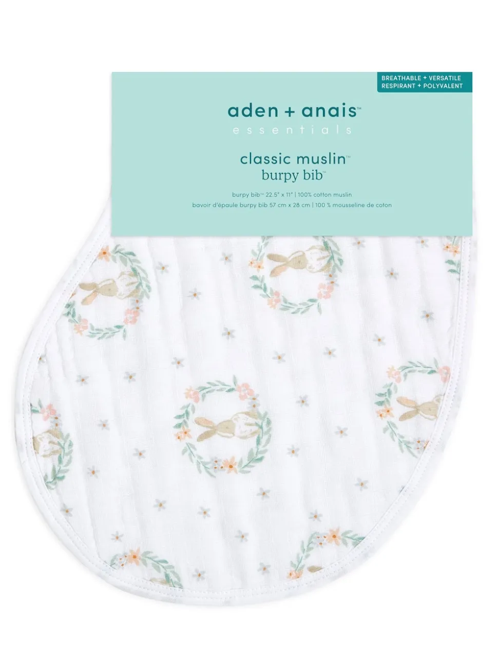 Aden + Anais Bébé Essentials Bunnies 100% coton mousseline Burpy