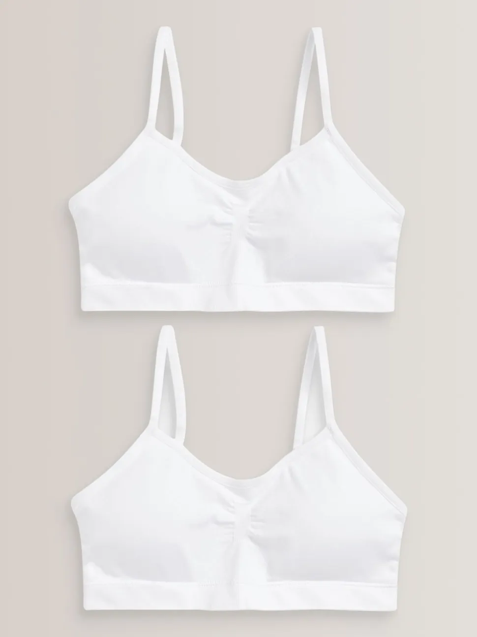 Blanc – Lot de 2 crop tops à bretelles sans coutures avec tasses amovibles légèrement rembourrées (7-16ans)