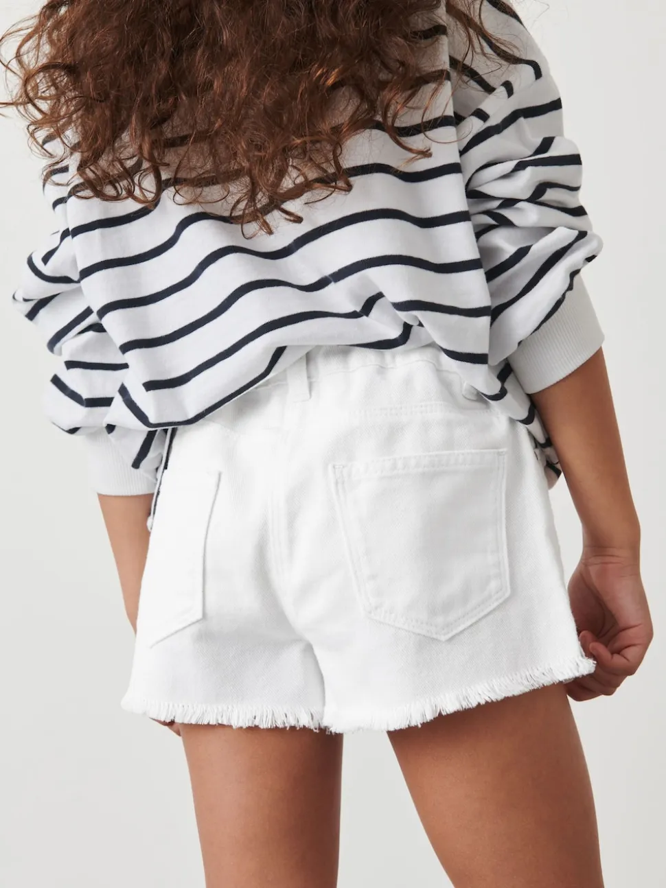 Blanc – Short en jean à bords effilochés (3-16ans)