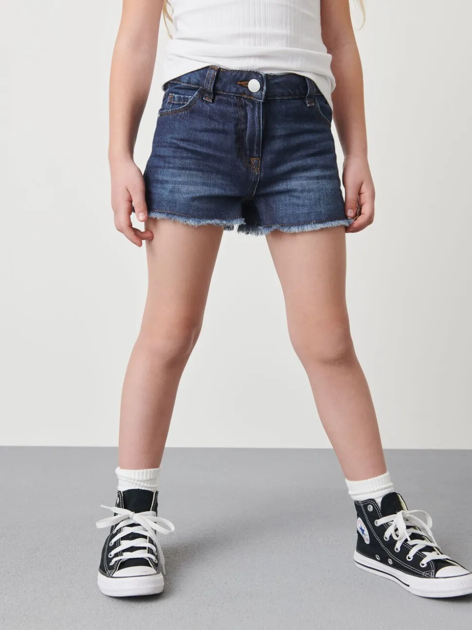 bleu foncé – Short en jean à bords effilochés (3-16ans)