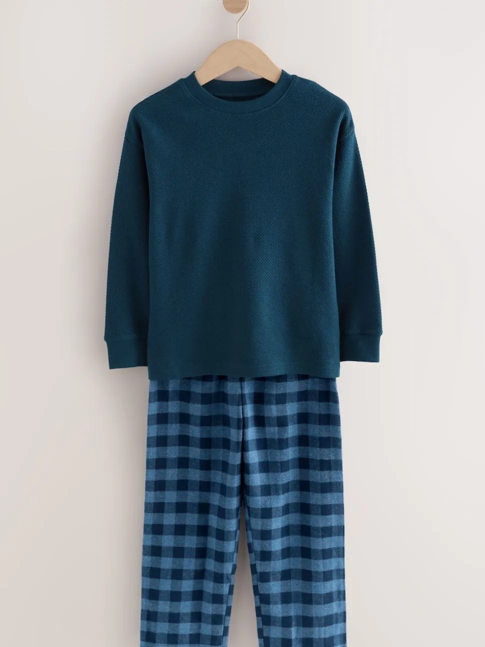 Bleu/Gris – Lot de 2 pyjamas en tissu à carreaux à manches longues (3-16ans)