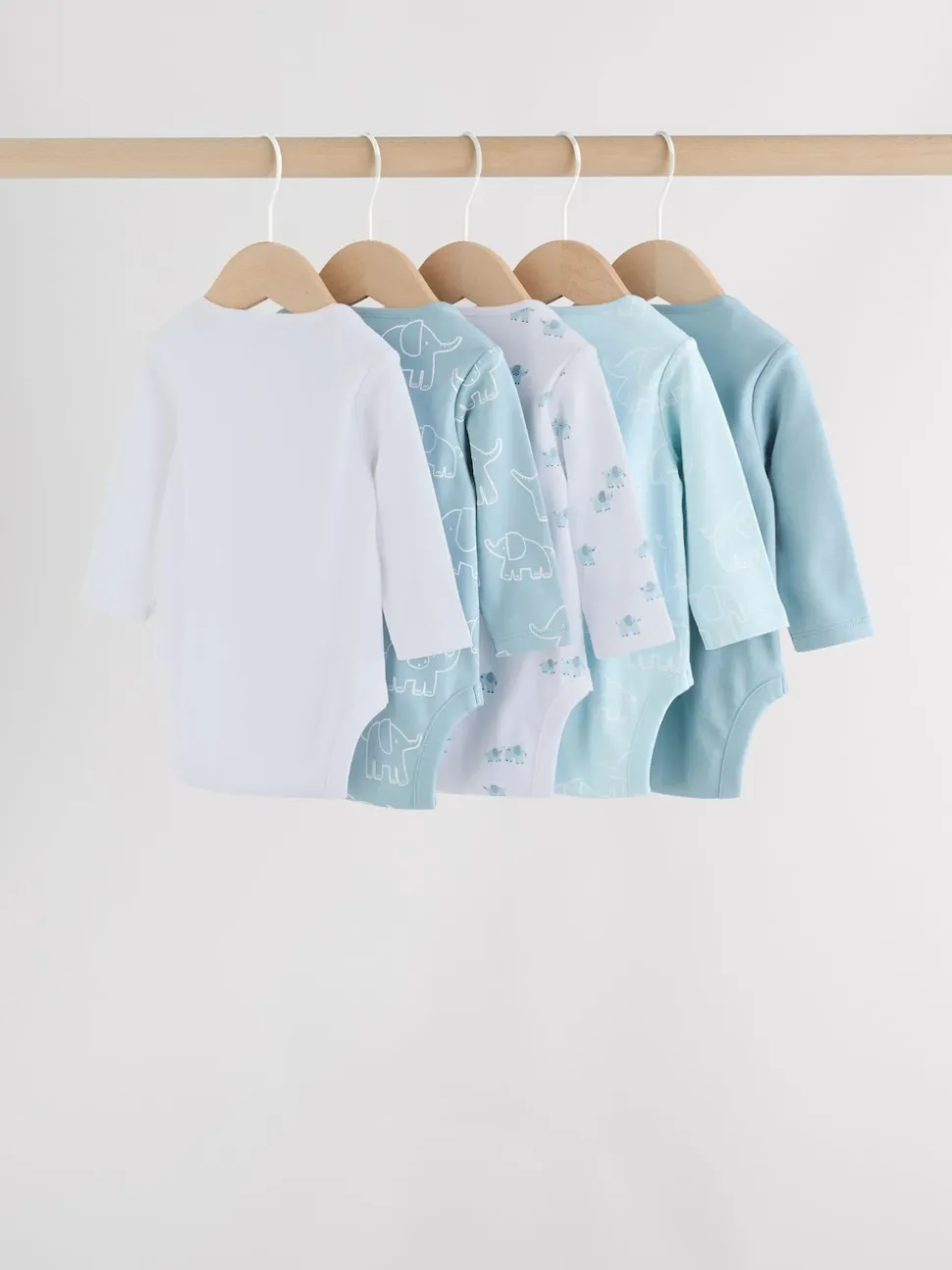 Bleu – Lot de 5 bodys à manches longues éléphant bébé