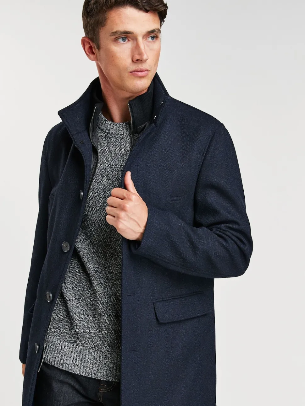 Nettoyage à sec uniquement. Matière principale 43% polyester recyclé, 33% laine recyclée, 21% viscose, 2% nylon, 1% acrylique. Dos 100% polyester. Doublure principale 100% polyester recyclé. Manches 100% polyester recyclé.