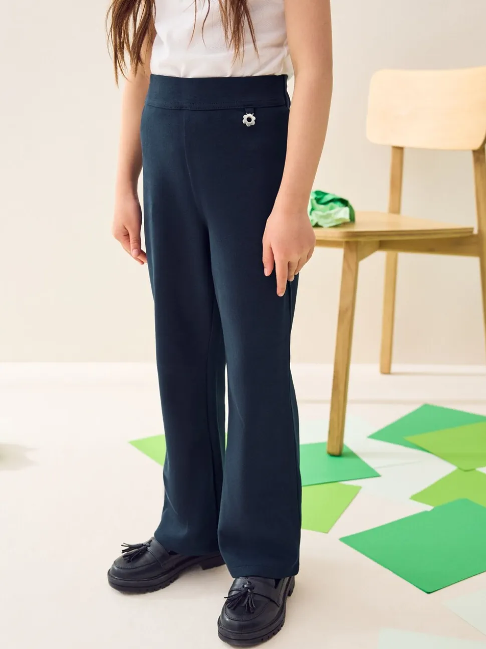 Bleu marine – Pantalons d’école extensibles à boutonnières en coton riche (3-16ans)
