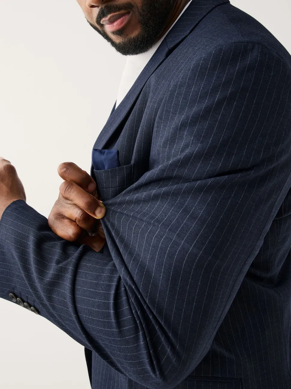 Bleu marine – Veste de costume extensible à rayures ajustée aux muscles Motionflex