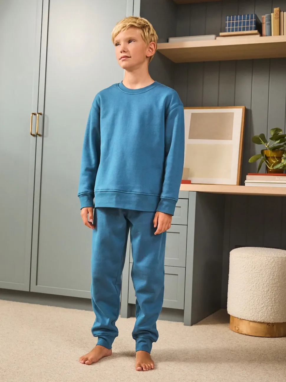 Haut de pyjama et bas de pyjama Principal 100% coton. Intérieur 100% polyester recyclé. Avertissement : tenir à l’écart du feu et des flammes.
