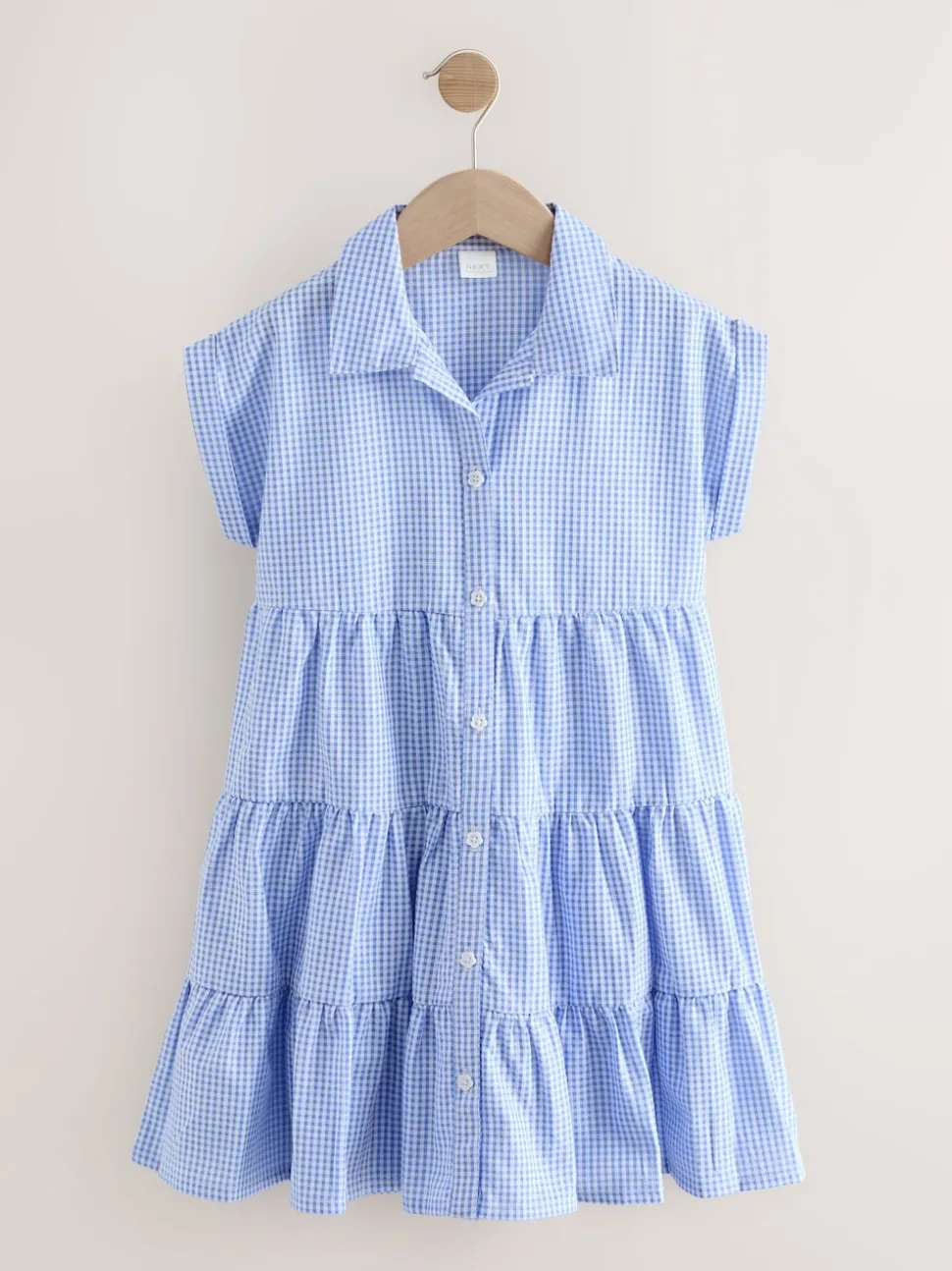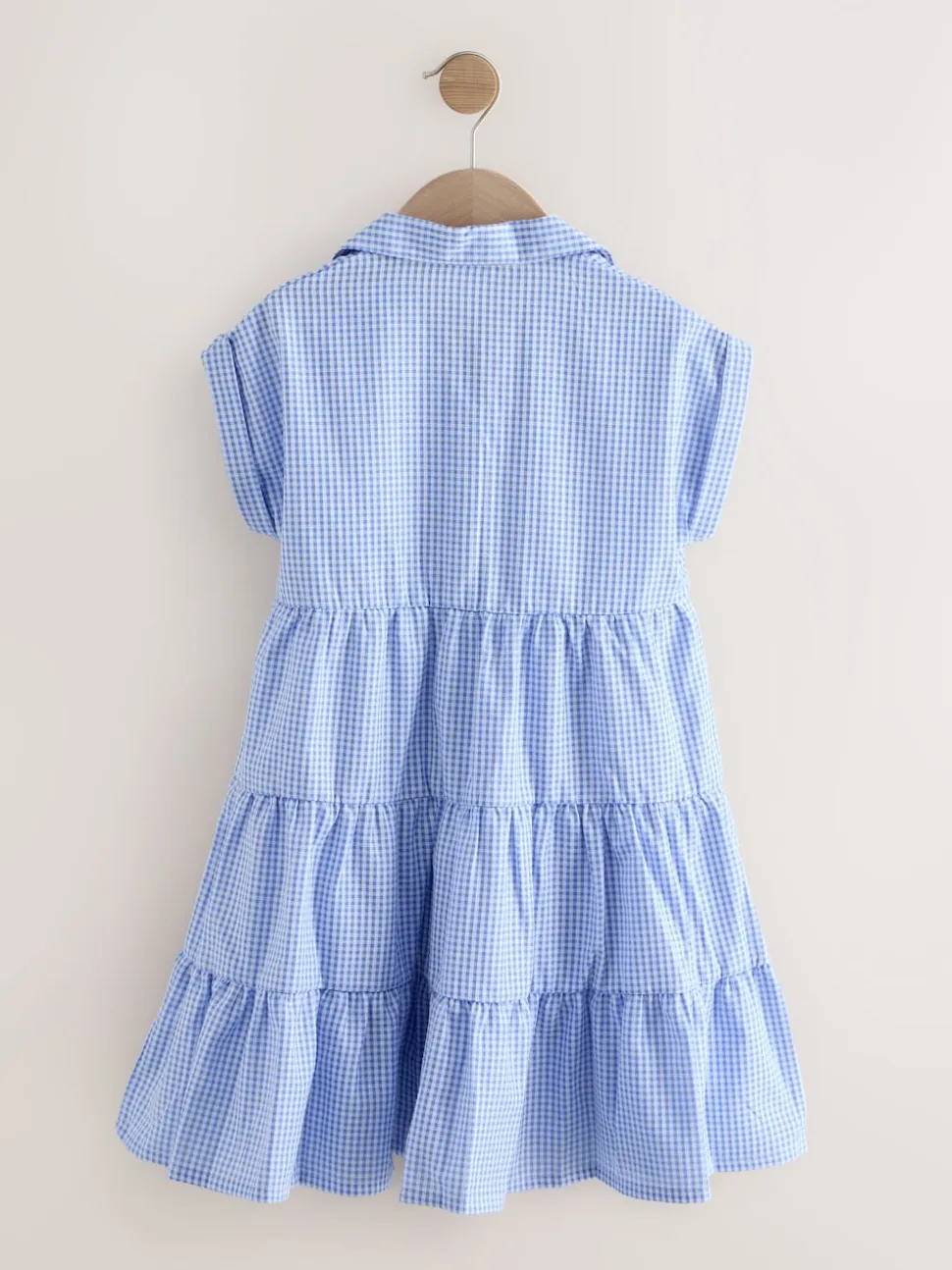 Bleu – Robe chemise à col chemise à volants vichy Cotton Rich School (3-14ans)