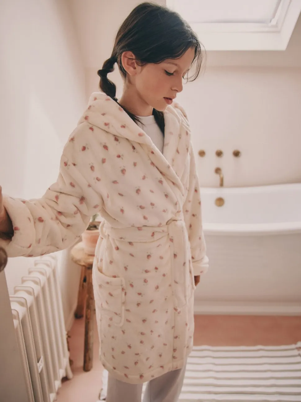 Bouton de rose crème – Robe de chambre en polaire (9 mois à 16 ans)