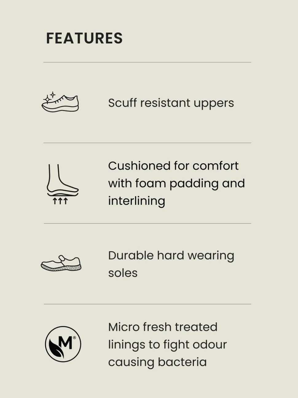 Tige – autres matières, doublure et première de propreté – Textile. Semelle – autres matériaux.