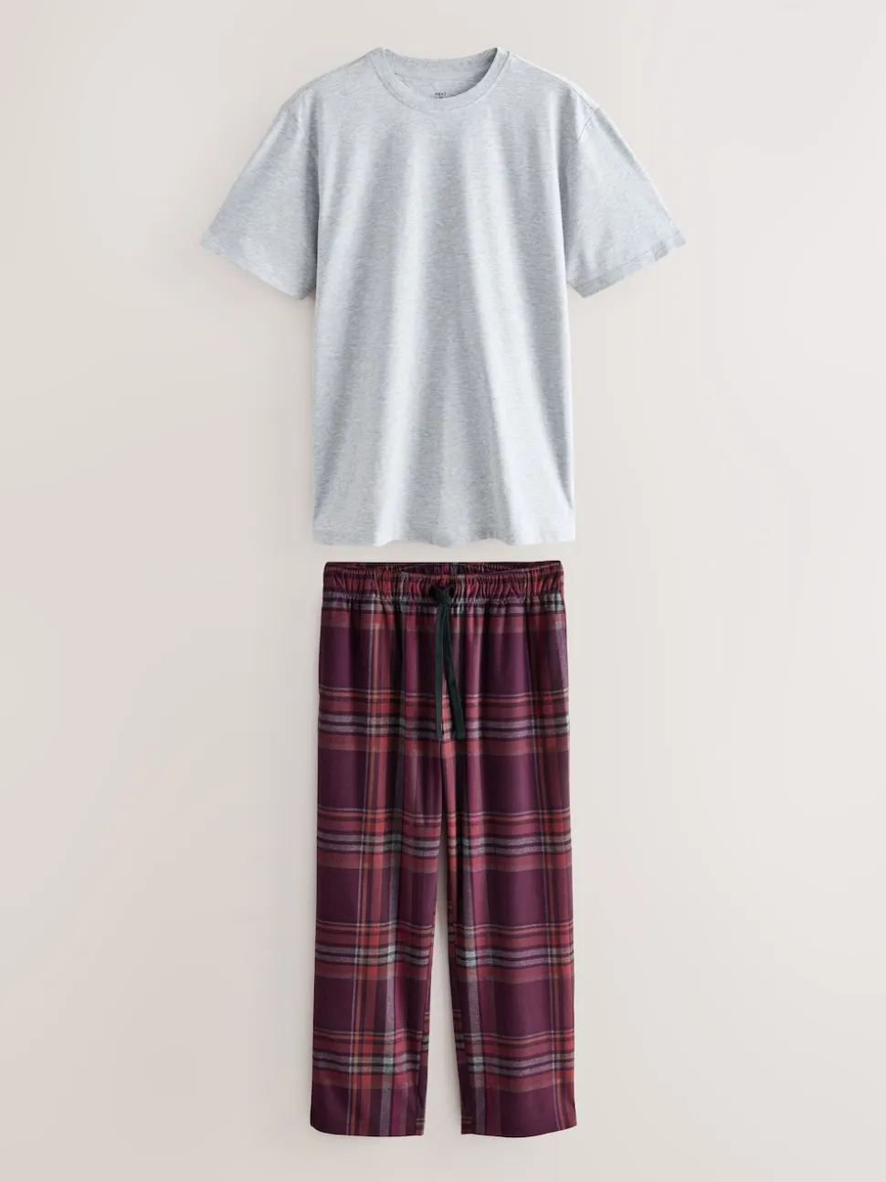Carreaux gris/rouge bordeaux – Pyjama confortable à manches courtes Motionflex