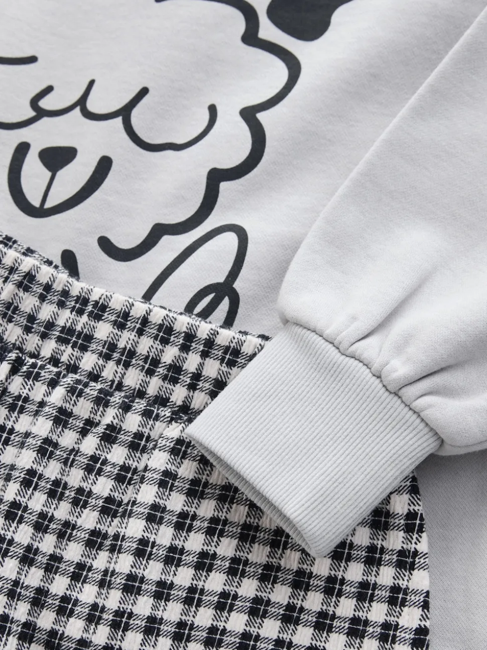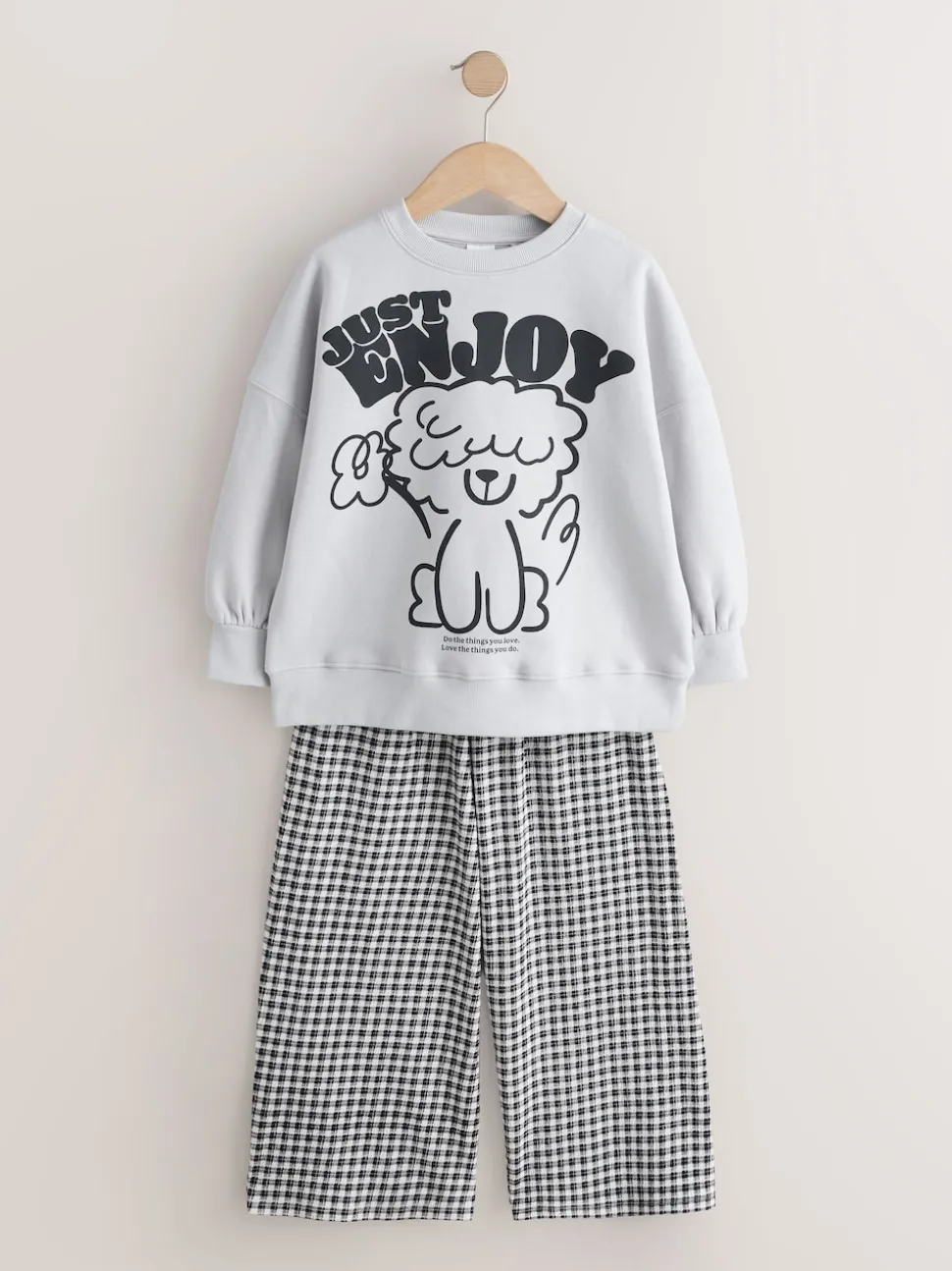 Chien gris/vichy – Ensemble Sweat-shirt et Pantalons Jambe large (3-16ans)