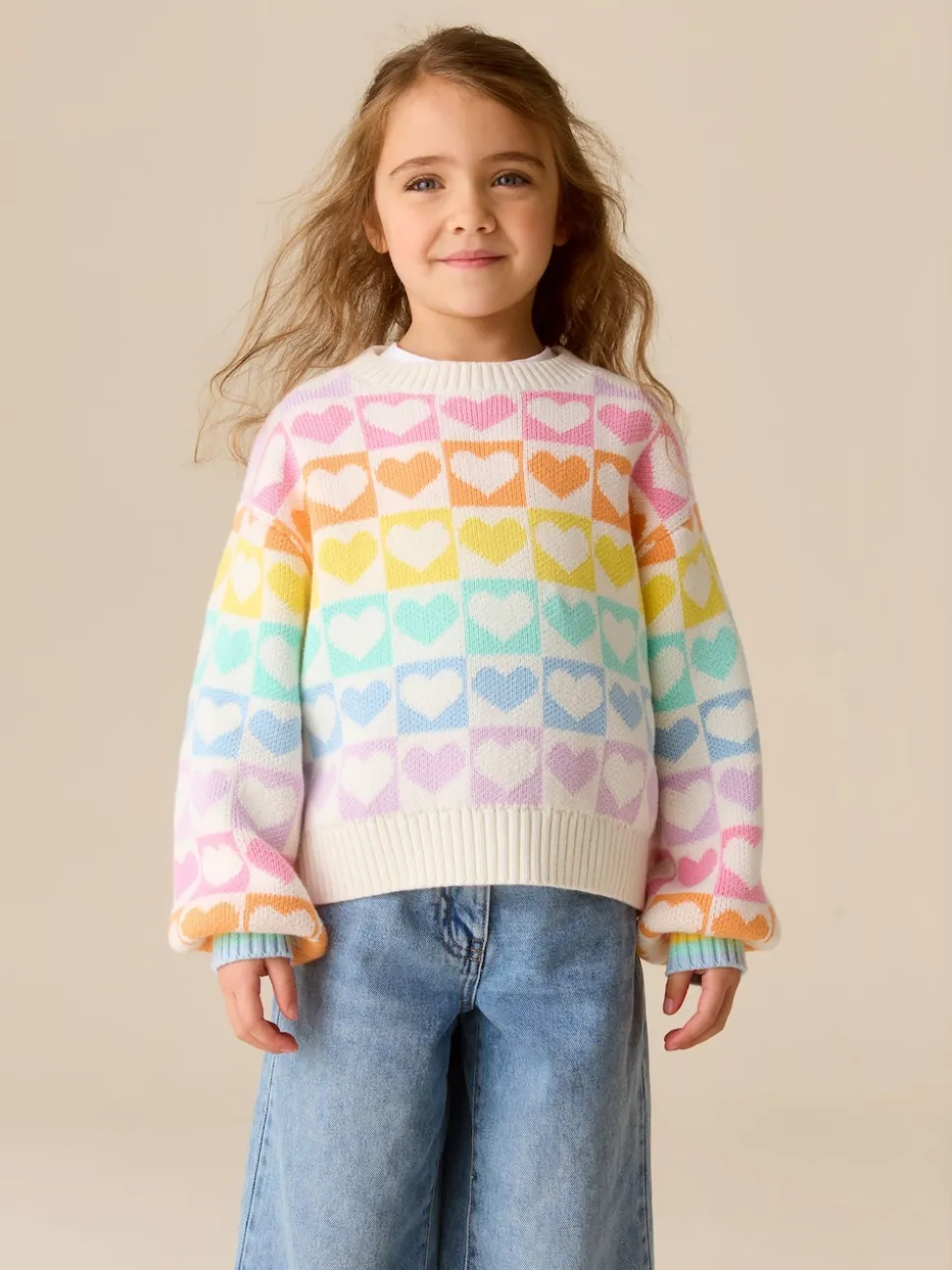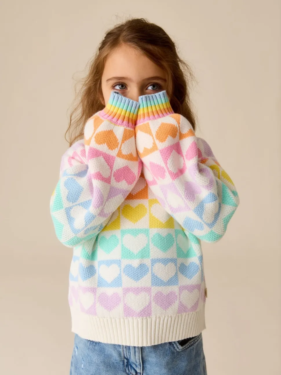 Cœurs arc-en-ciel pastel – Little Bird by Jools Oliver pull color block en maille