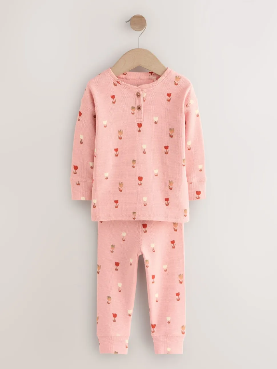 Cœurs écru/rose – Lot de 2 pyjamas gaufrés (9mois à12ans)
