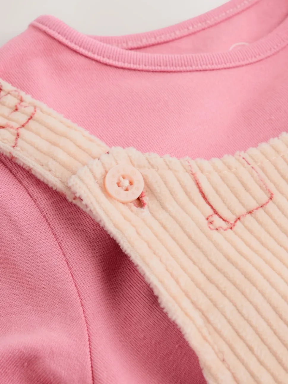 Cream / Personnage rose – Ensemble deux pièces salopette et body bébé (0mois-3ans)
