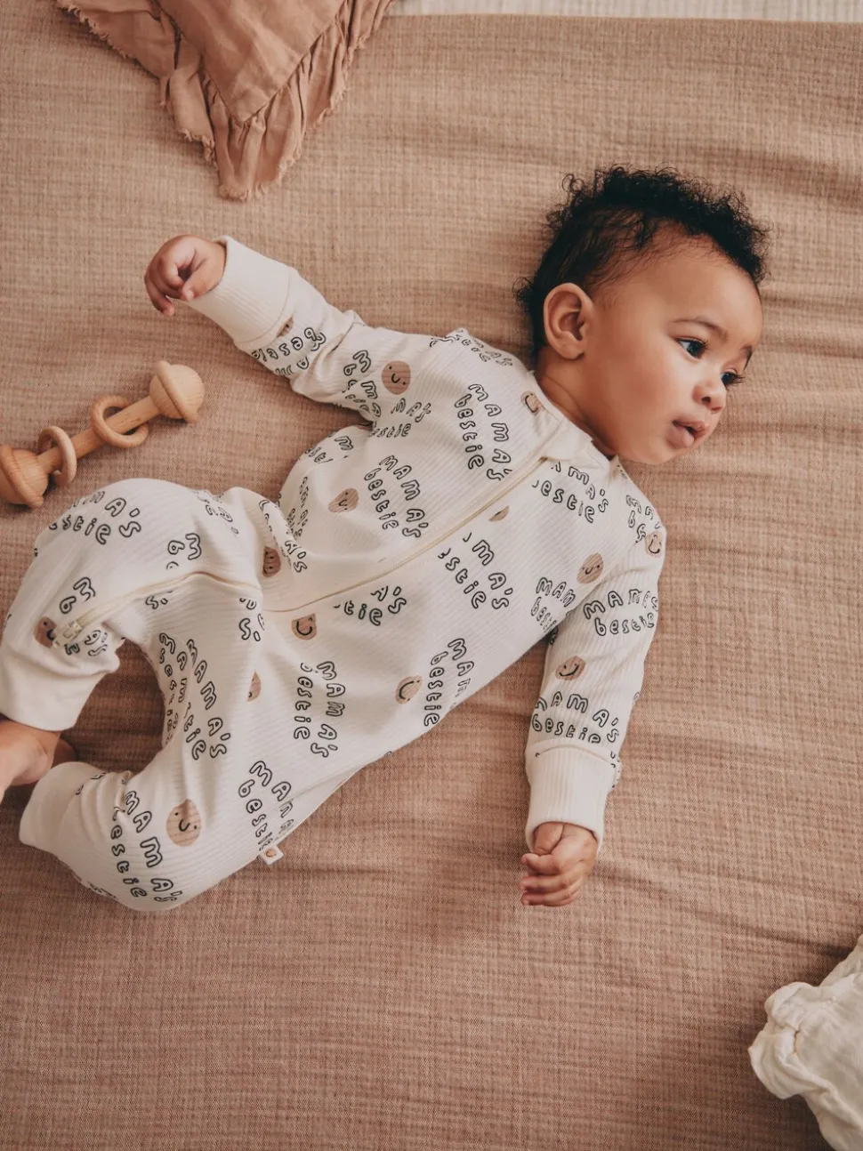 Crème – Combinaison de nuit bébé sans pieds zippée Family Two Way (0-18mois)