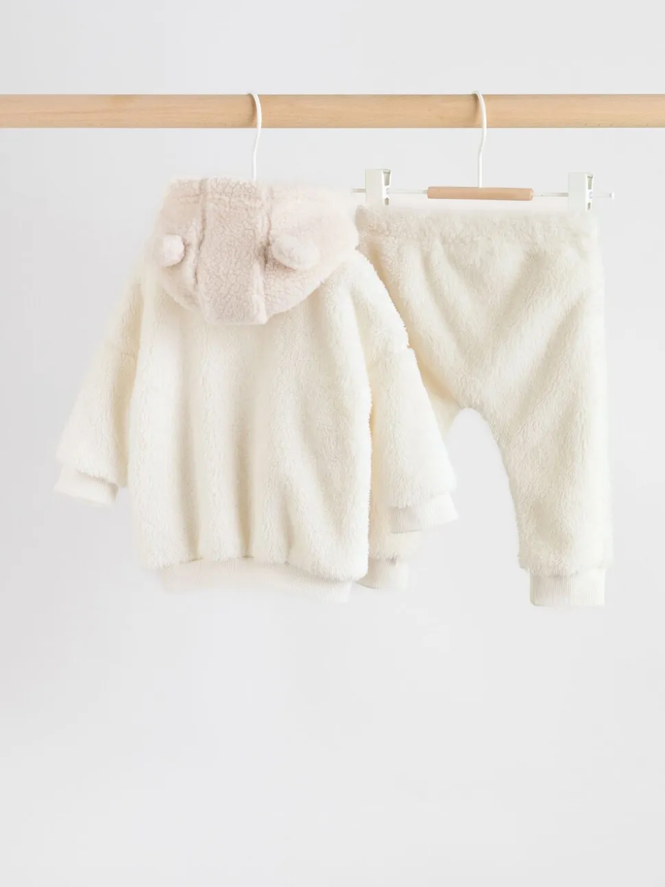Crème – Ensemble bébé sweat à capuche et jogging Borg (0mois-2ans)