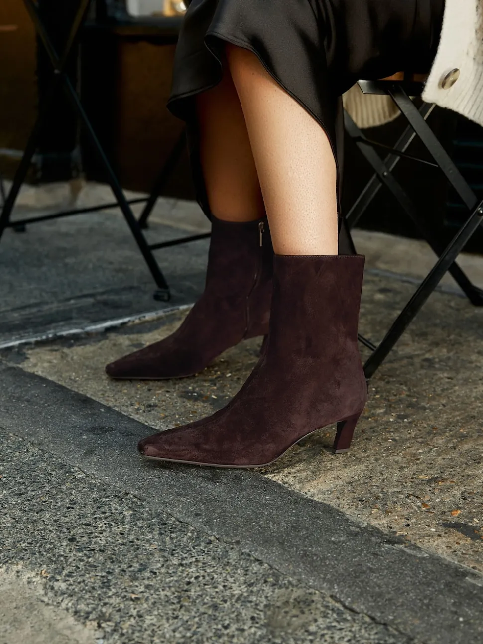 Daim marron chocolat – Bottines à talons Forever Comfort® avec bout ciselé
