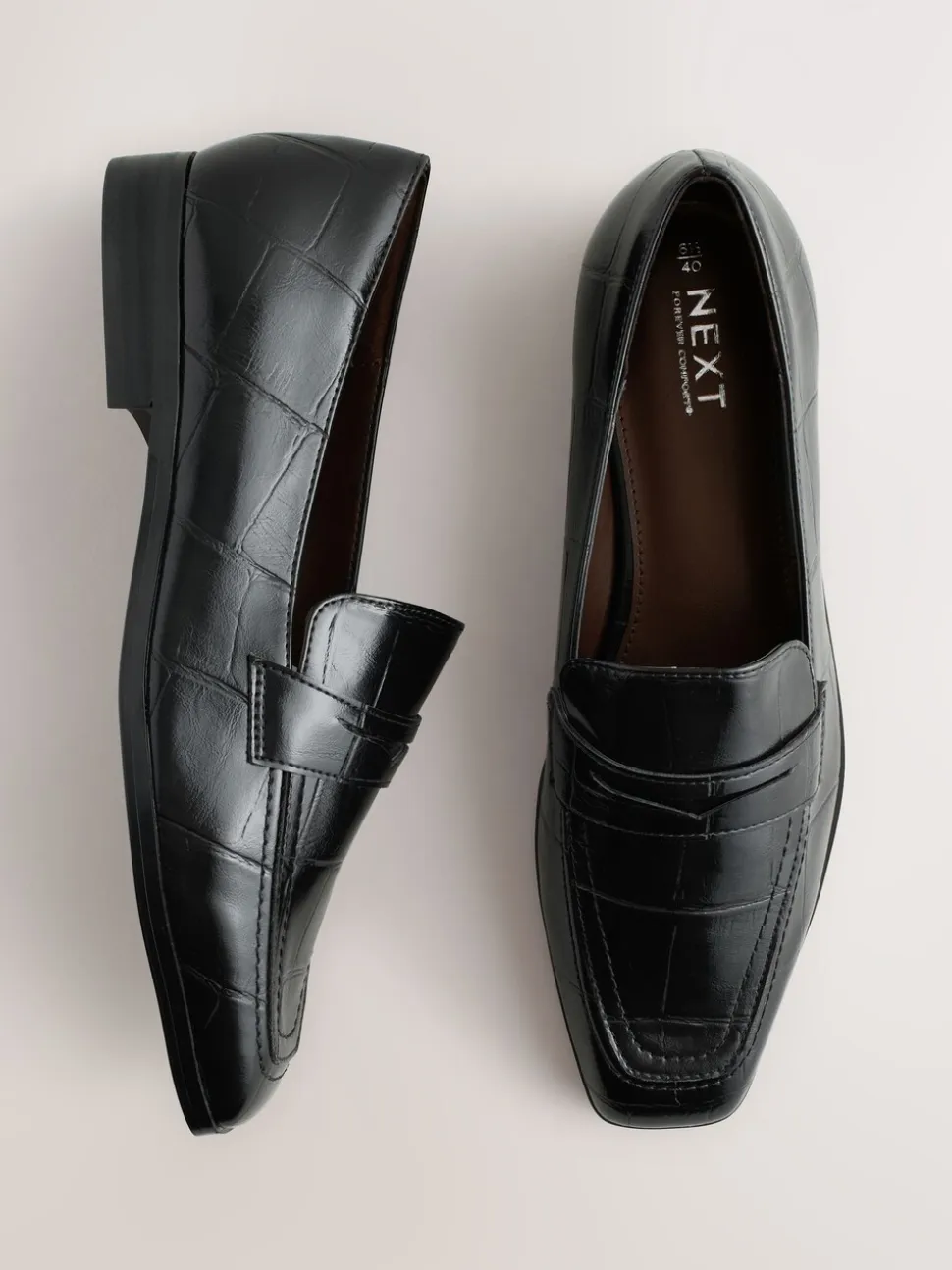 Effet Croc noir – Mocassins Forever Comfort® à bout carré