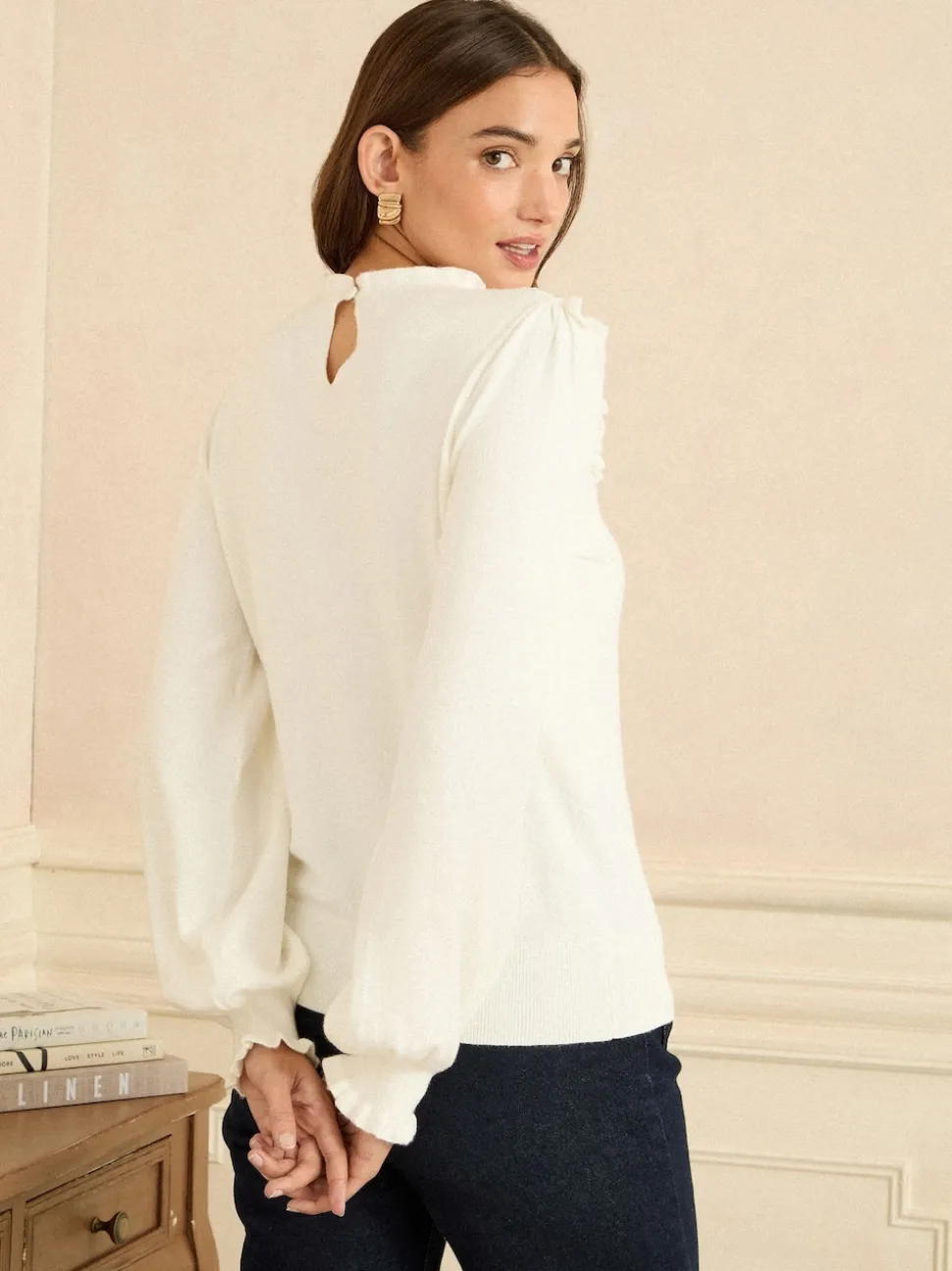 Empiècement en dentelle blanche – Pull Love & Roses en maille
