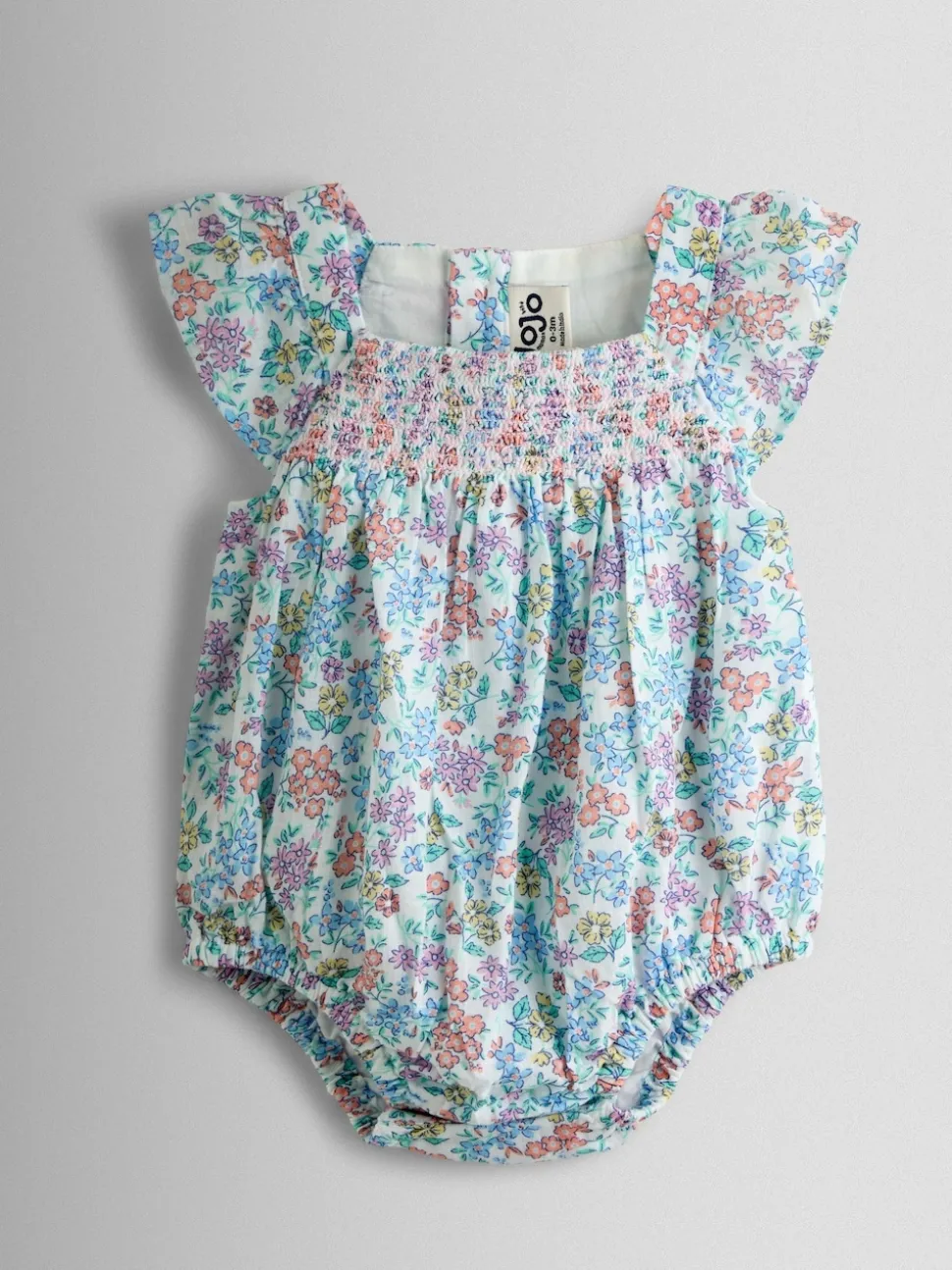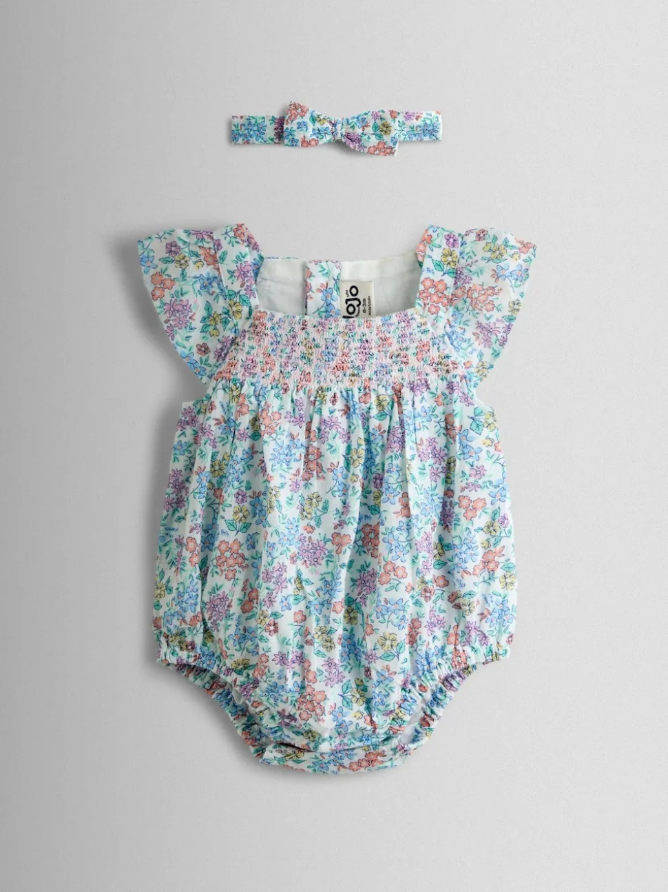 Ensemble barboteuse et bandeau JoJo Maman Bébé à fleurs smockées