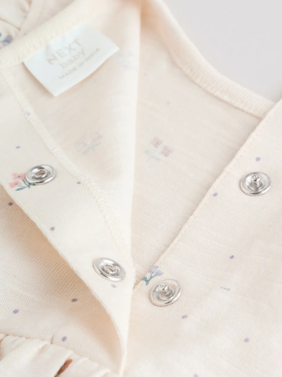 Épaule à volants fleuri lilas et écru – Lot de 3 barboteuses