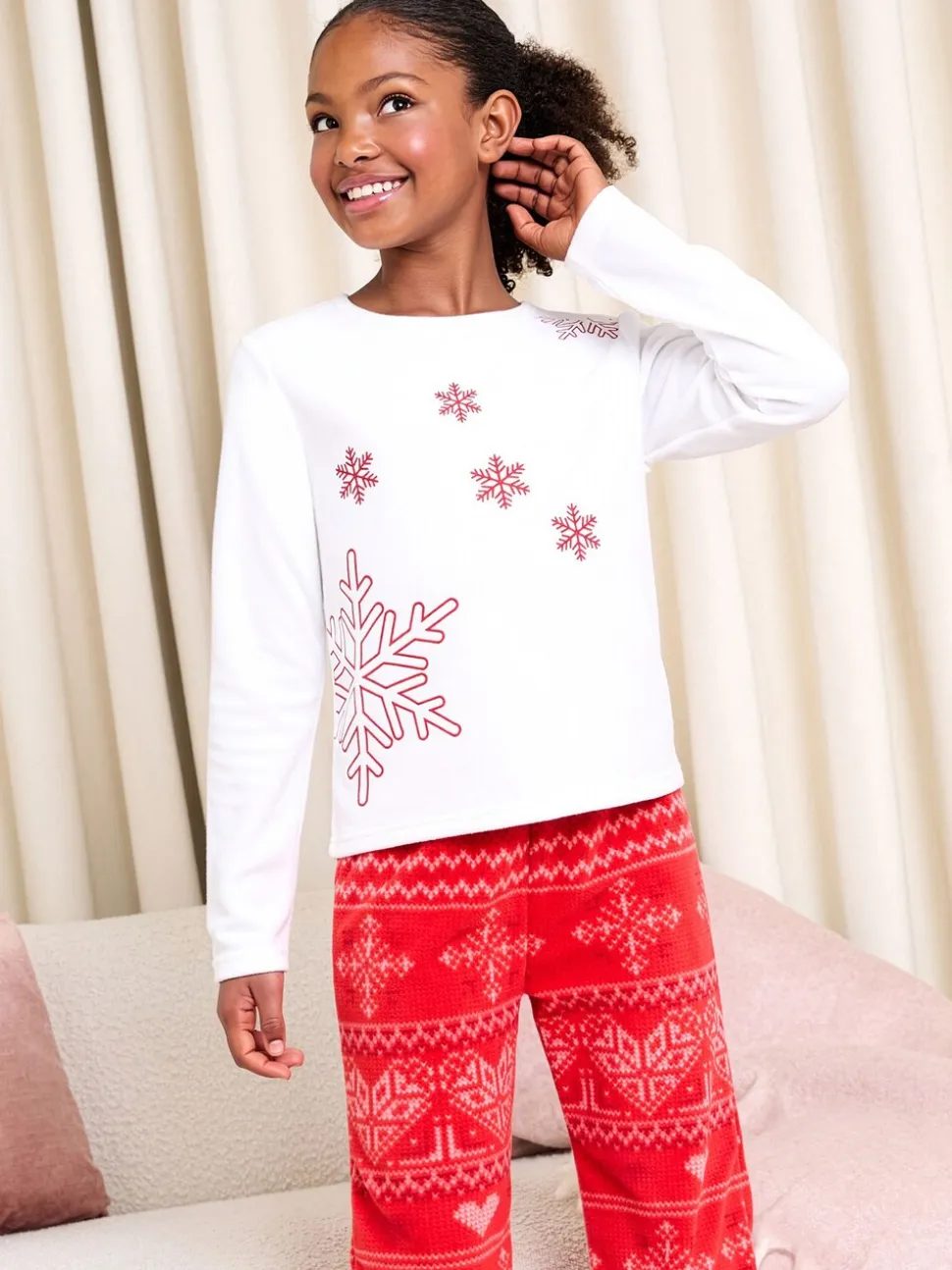 Flocon de neige rouge/blanc – Pyjama Lipsy Noël doux au toucher Fairisle Twosie (5-16ans)