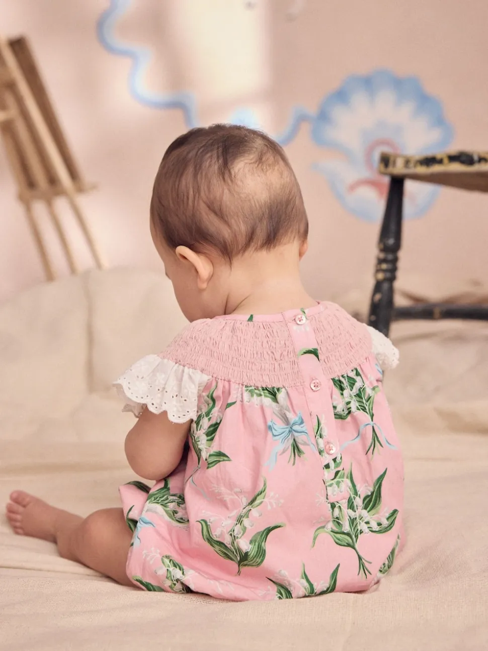 Floral rose – Barboteuse brodée Cath Kidston 100% coton imprimée