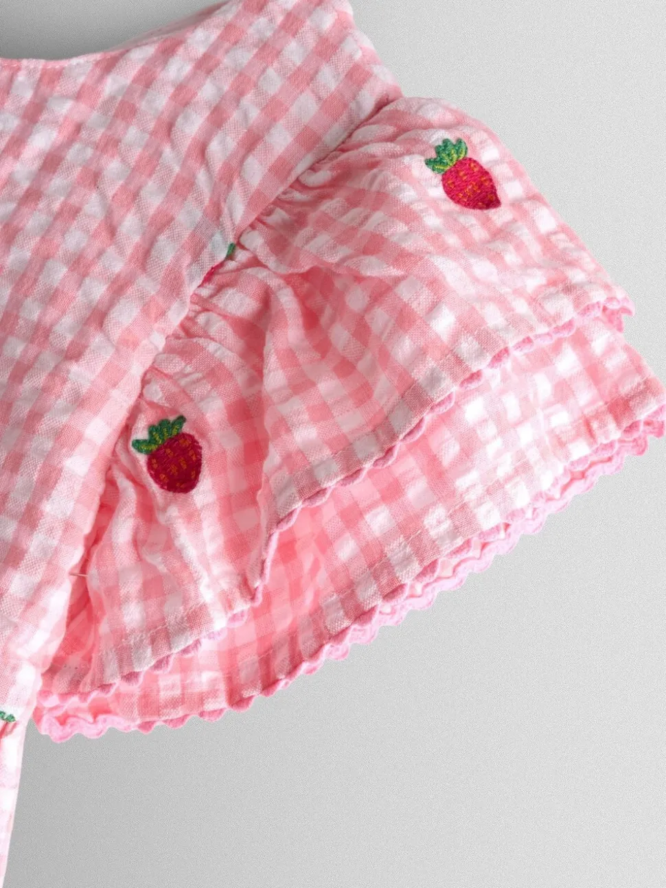 Fraise vichy rose – Robe JoJo Maman Bébé Fleuri Brodée à manches à volants