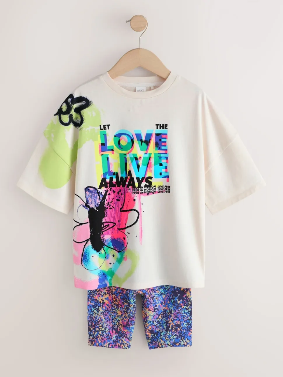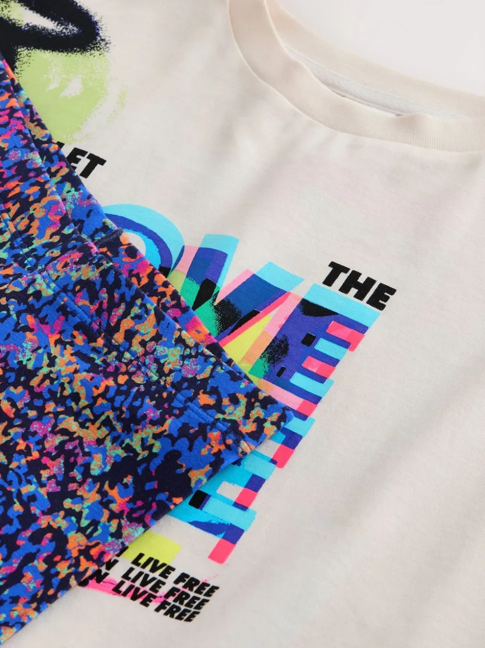 Graffitis bleu/blanc – Ensemble t-shirt et short cycliste (3-16ans)