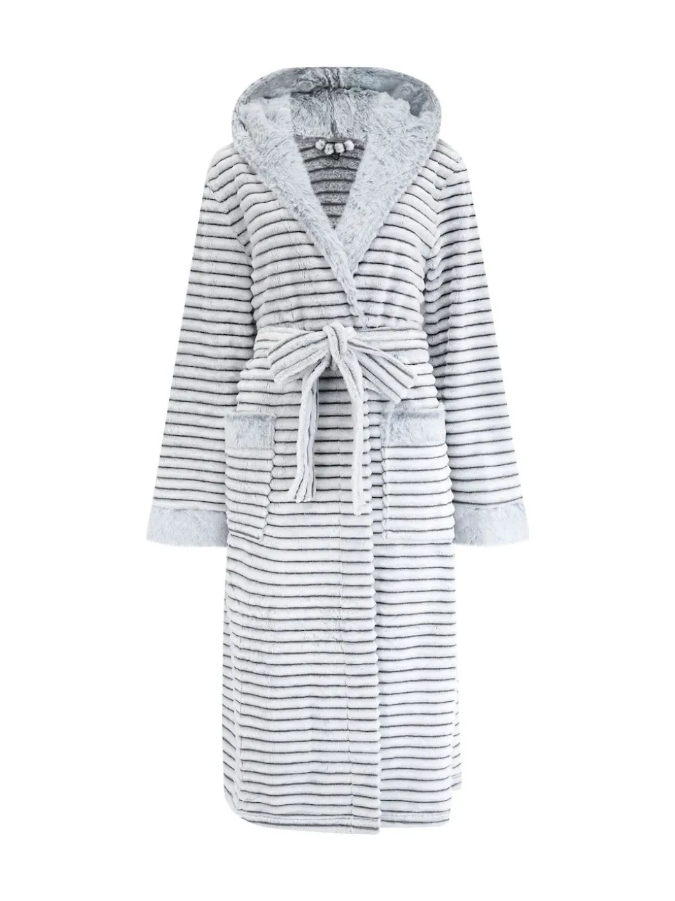 Gris – Pour Moi Robe de chambre cosy en polaire côtelée Mi-long À capuche