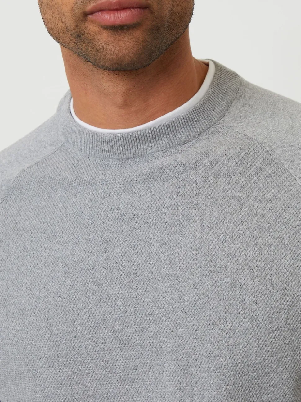 Gris – Pull Threadbare Mock T-shirt texturé en maille à col rond