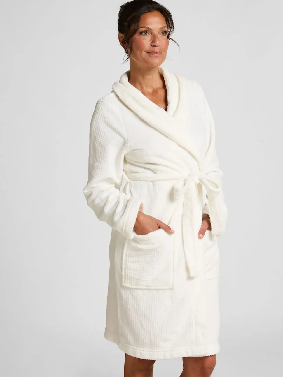 Hunkemoller Peignoir blanc en polaire courte en flanelle à pois en relief