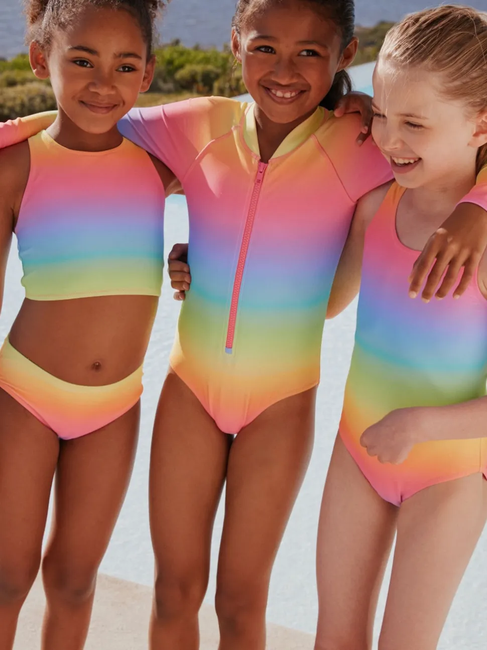 Imprimé arc-en-ciel dégradé – Maillot de bain à col dégagé (3-16ans)