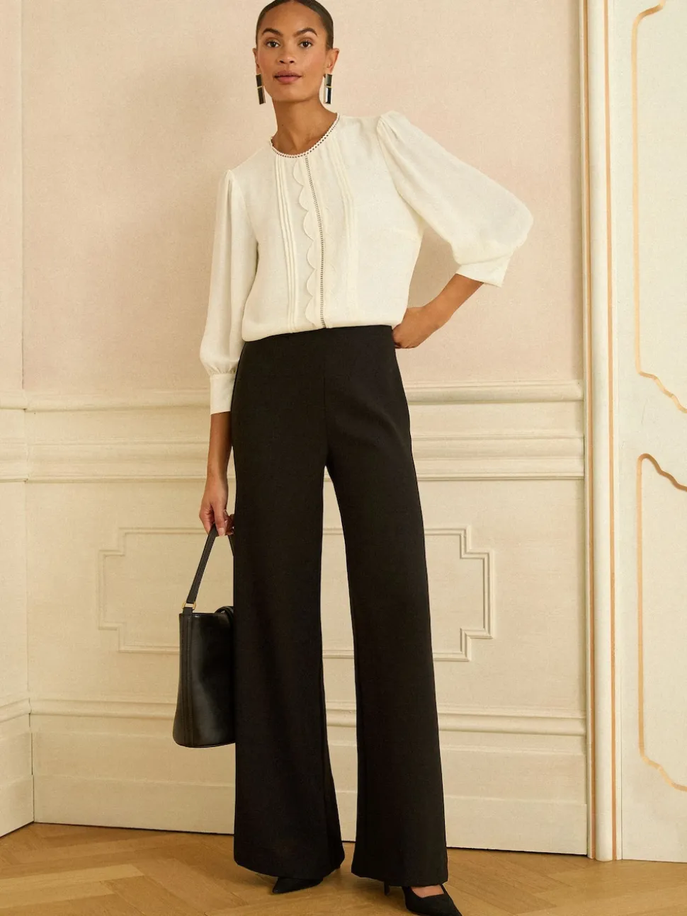 ivoire – Love & Roses Chemisier à manches festonnées 3/4